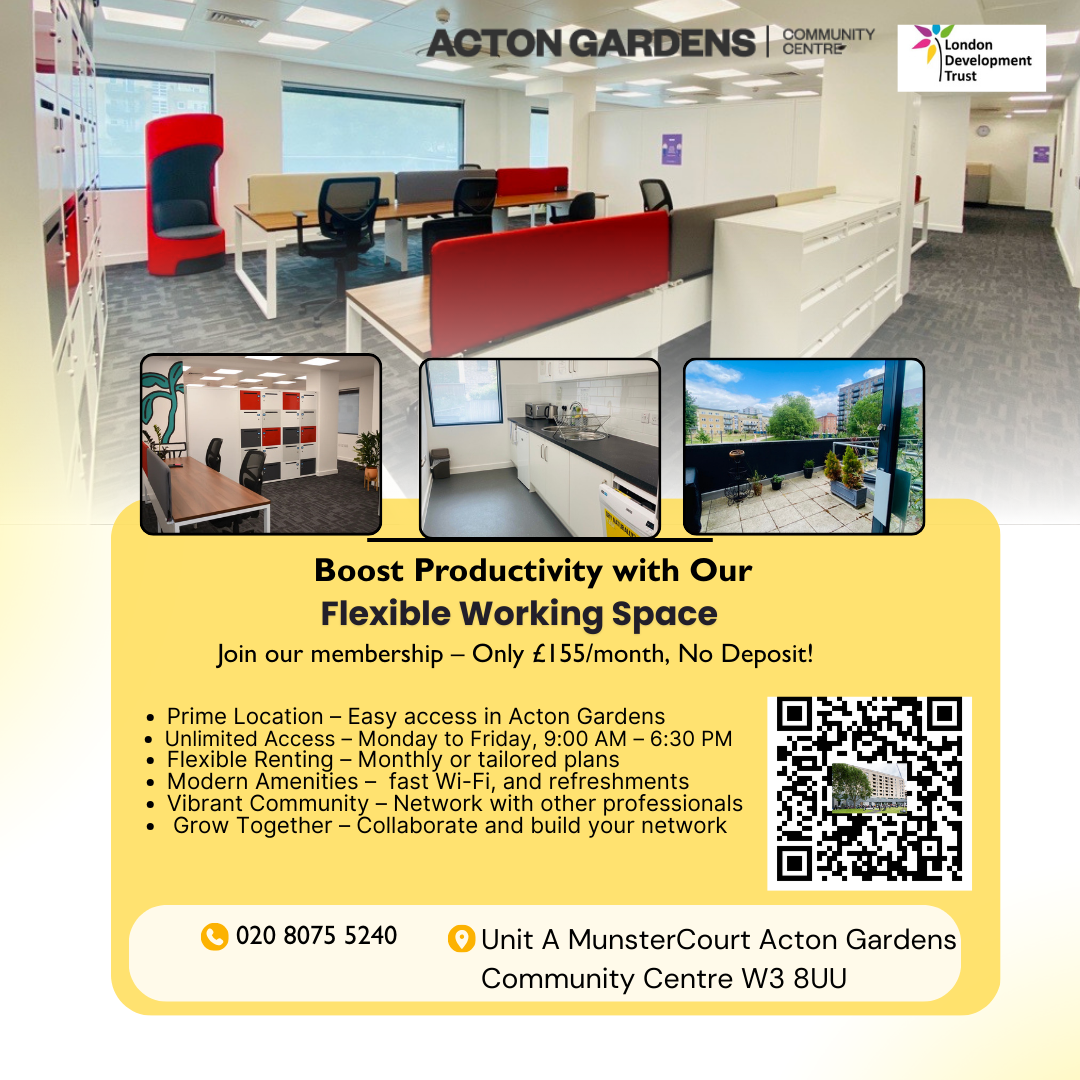 Explore a special trial offer to welcome more professionals into the vibrant community at Acton Gardens Community Centre.